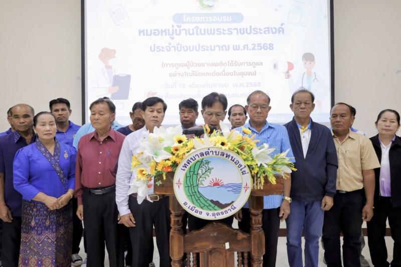 วันที่ 12 กันยายน 2568 เทศบาลตำบลหนองไผ่จัดโครงการอบรมหมอหมู่บ้านในพระราชประสงค์ประจำปีงบประมาณพ.ศ. 2568 (การดูแลผู้ป่วยยาเสพติดได้รับการดูแลอย่างใกล้ชิดและต่อเนื่องในชุมชน) ณ ห้องประชุมอาคารเอนกประสงค์เทศบาลตำบลหนองไผ่